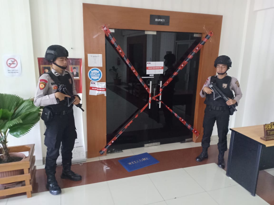Ruangan tersebut juga dijaga ketat petugas Polisi mengenakan seragam lengkap dan senjata laras panjang. Penyegelan ruang kerja bupati dan ruang Kabid Dinas PUPR dilakukan secara serentak pada Senin (2/9) pukul 21.00 WIB.