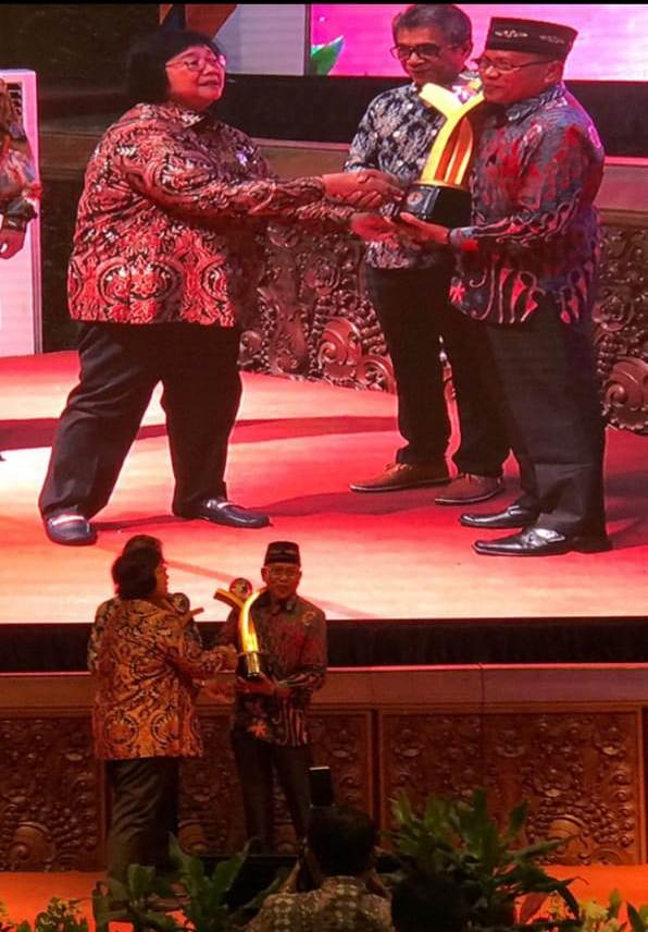 Penghargaan tersebut diterima langsung oleh Kades Sidomulyo, Surono dari Menteri KLH RI Siti Nurbaya bertempat Gedung Manggala Wana Bhakti, Jakarta, Rabu (2/10/2019). Dalam acara penyerahan apresiasi pembinaan proklim dalam acara puncak Festival Iklim Tahun 2019. Turut hadir mendampingi Plt Bupati H Juarsah SH yang diwakili Asisten II Amrullah Jamaludin, Kadin Lingkungan Hidup Kurmin dan sejumlah pejabat lainnya.