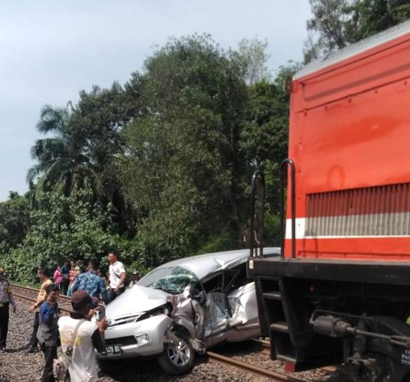 INFOKITO.ID,MUARA ENIM – Perlintasan kereta api (KA) lagi-lagi menjadi momok bagi masyarakat kota Muara Enim. Kali ini, sebuah mobil Toyota Avanza dengan nopol BE 1479 BS digeruduk KA Selero Tujuan Lubuk Linggau – Palembang dengan No Log CC 2010403 R yang melintas di Perlintasan Kereta Api, daerah Rumah Tumbuh, Kelurahan Muara Enim, Kecamatan Muara Enim, Kabupaten Muara Enim, Minggu (13/10/2019) sekitar pukul 13.15 WIB.
