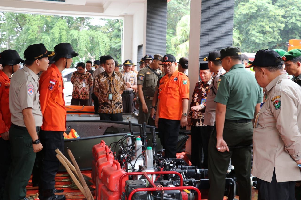 Usai apel, Bupati bersama Forpimda mengecek kesiapan peralatan untuk menghadapi bencana alam. Plt Bupati Juarsah meminta semua komponen baik TNI, Polri, BPBD, dan relawan bersatu meningkatkan kewaspadaan terhadap terjadinya potensi bencana di musim hujan.