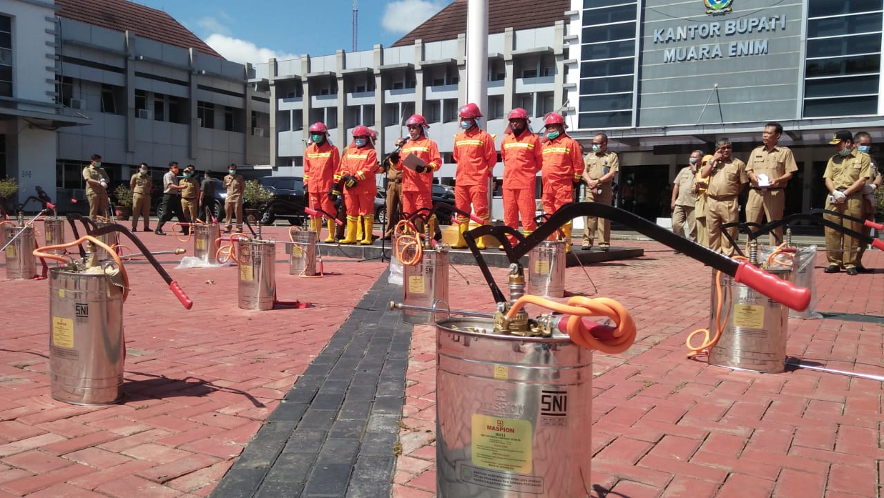 Pada kegiatan Apel Gabungan Penyemprotan Desinfektan diikuti anggota berjumlah 40 orang, terdiri dari Unsur TNI dan Polri, Dinas Pemadam Kebakaran dan penyelamatan, Badan Penanggulangan Bencana Daerah, Dinas Kesehatan, Dinas Pertanian, Dinas Lingkungan Hidup. Selain kantor Pemkab Muara Enim, Masjid Agung, Stasiun Kareta Api, Taman PKK, Taman Serasan ikut disemprot Disenfektan. (dang)