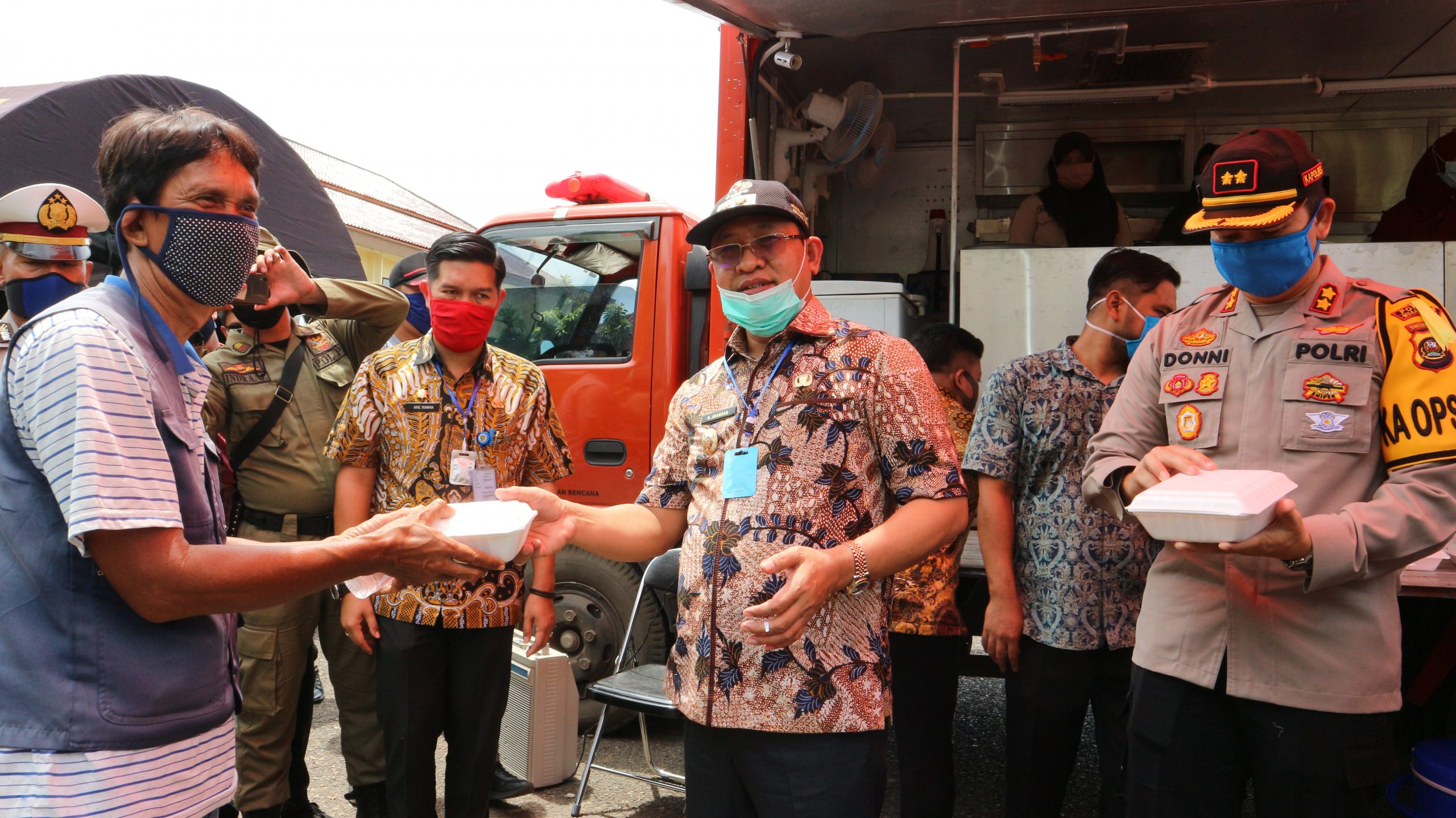 Peresmian dapur umum tersebut dilakukan langsung oleh Plt Bupati Muara Enim H Juarsah SH, kemarin siang. Turut mendampingi Kapolres Muara Enim AKBP Donni Eka Syaputra SH SIk MM, Dandim 0404 Muara Enim Letkol Syafruddin, Kajari Muara Enim Mernawati SH, anggota DPRD Munyati dan Mardalena dan sejumlah kepala OPD lingkup Muara Enim. Secara simbolis, makan siang siap saji tersebut dibagikan kepada para tukang ojek. Setelahnya tim menyebar membagikan makanan lain ke -18 titik pembagian di wilayah Muara Enim.