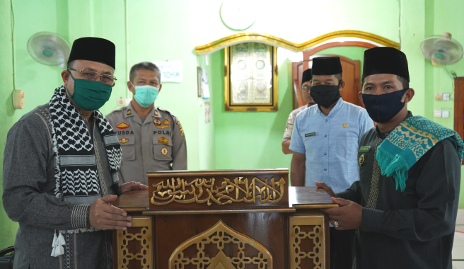 Dalam kunjungan itu, Plt Bupati memberikan cindera mata berupa mimbar masjid, speaker wireles, kipas angin dan bola volly.
