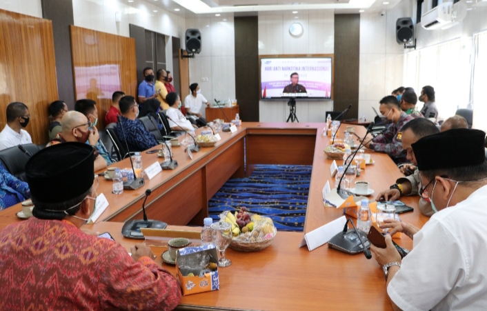 Penegasan itu disampaikan Plt Bupati Muara Enim H Juarsah SH melalui Asisten Pemerintahan dan Kesejahteraan Rakyat (Kesra) Drs Teguh Jaya MM, disela mengikuti kegiatan webinar dalam rangka peringatan Hari Anti Narkotika Internasional (HANI) 2020 oleh Badan Narkotika Nasional (BNN) Pusat, Jumat (26/6/2020).