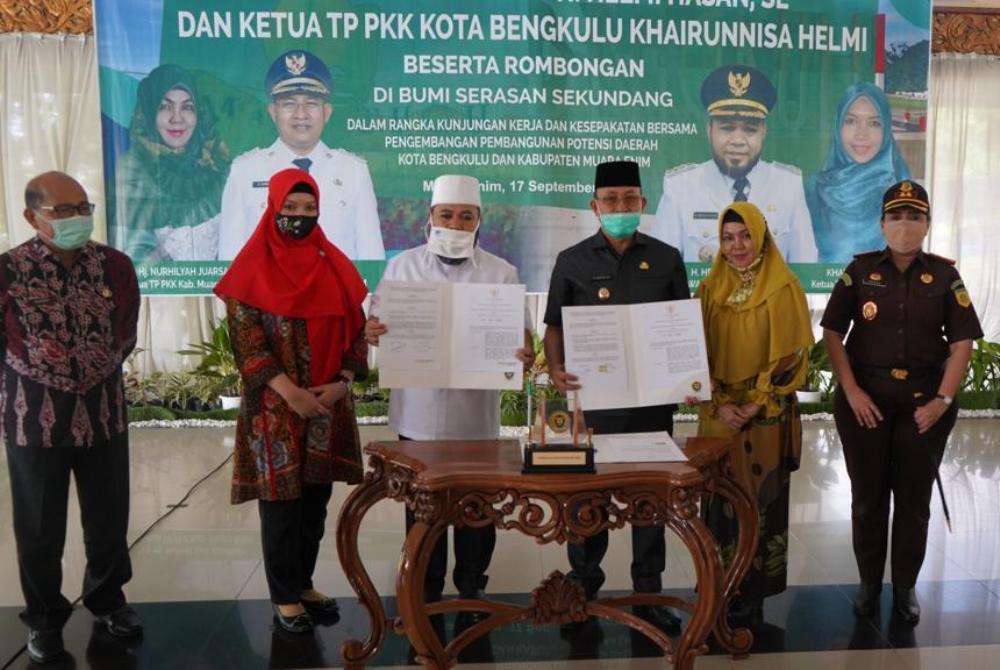 Diakhir acara, Plt Bupati Muara Enim dan Walikota Bengkulu melakukan penandatanganan nota kesepakatan bersama tentang kerjasama pembangunan potensi daerah yang dilanjutkan dengan penyerahan cinderamata.