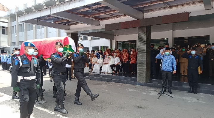 Jenazah almarhum Sekda Muara Enim dimakamkan di pemakaman umum Pelita Sari, Kecamatan Muara Enim, Senin (9/11/2020). Sebelum dimakamkan digelar upacara penghormatan jenazah Sekda Muara Enim digelar di Halaman Kantor Pemkab Muara Enim dengan dipimpin langsung Plt Bupati Muara Enim H Juarsah SH.