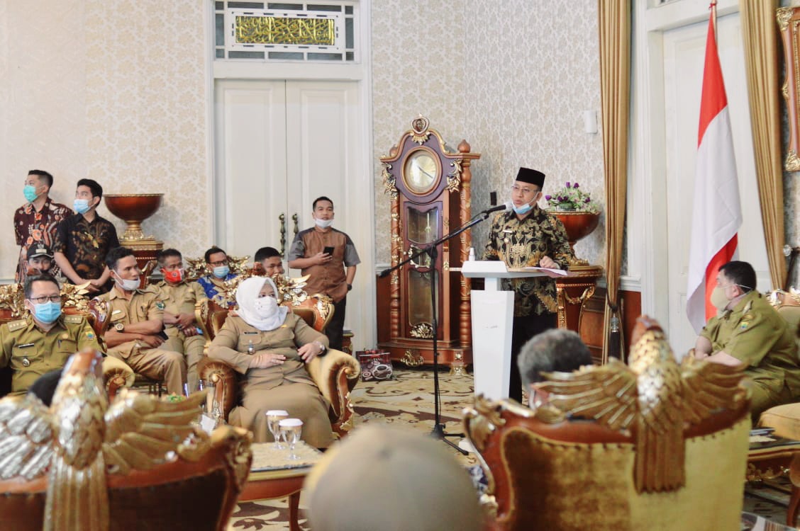 Kunjungan Plt Bupati yang disertai Asisten Perekonomian dan Pembangunan (Perekobang) Setda Kabupaten Muara Enim Amrullah Jamaluddin SE bersama rombongan yakni para Kepala Perangkat Daerah teknis terkait, 4 Camat serta 23 kepala desa di Ruang Garuda, Rumah Dinas Bupati Cianjur disambut oleh Asisten Perekobang Kabupaten Cianjur H Yanto Hartono beserta jajarannya.