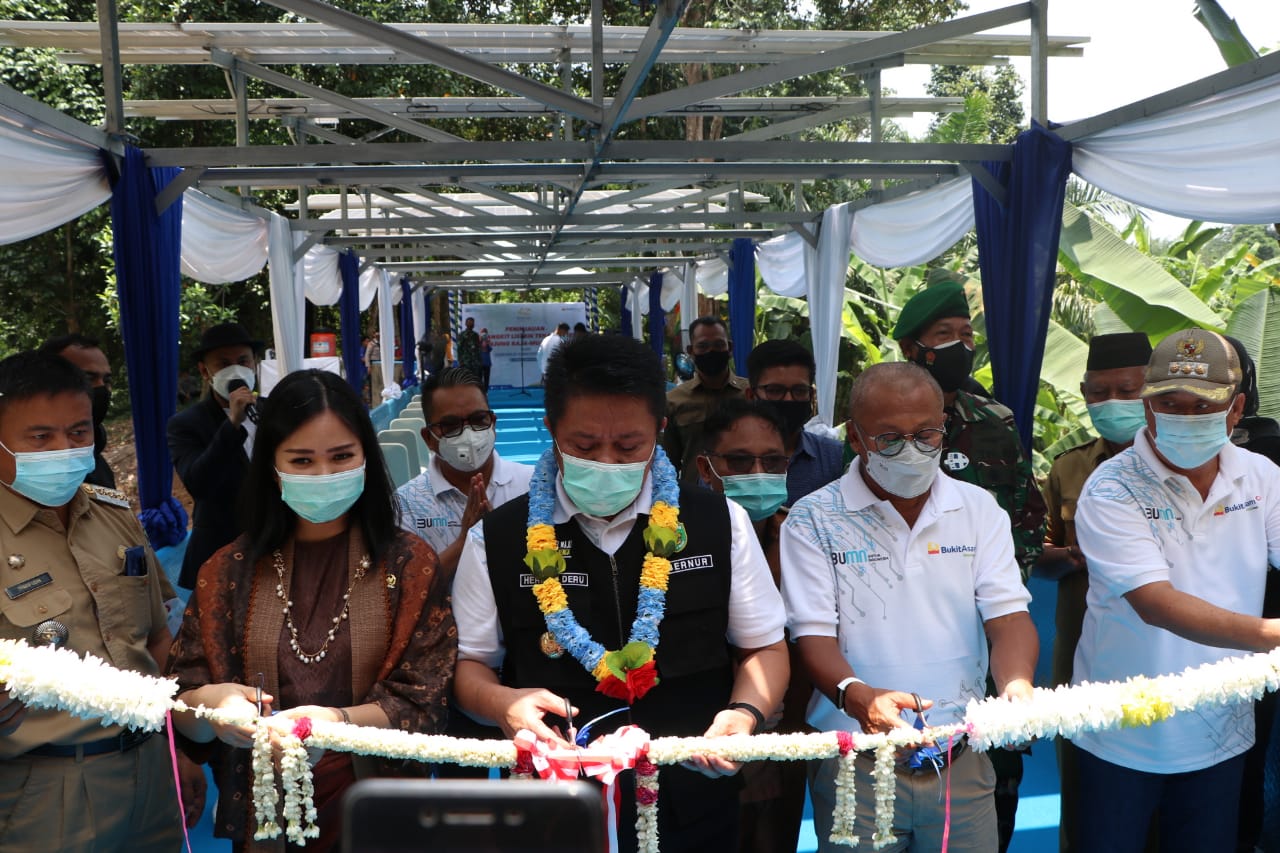INFOKITO.ID, MUARA ENIM – Dalam rangka memperingati HUT puncak PTBA ke-40, Gubernur Sumsel H Herman Deru dan Dirut PTBA Arviyan Arifin meresmikan Pembangkit Listrik Tenaga Surya (PLTS) Tanjung Raja untuk persawahan pertama di Sumsel dan Obyek Wisata Tambang Tanjung Enim, Selasa (2/3/2021).