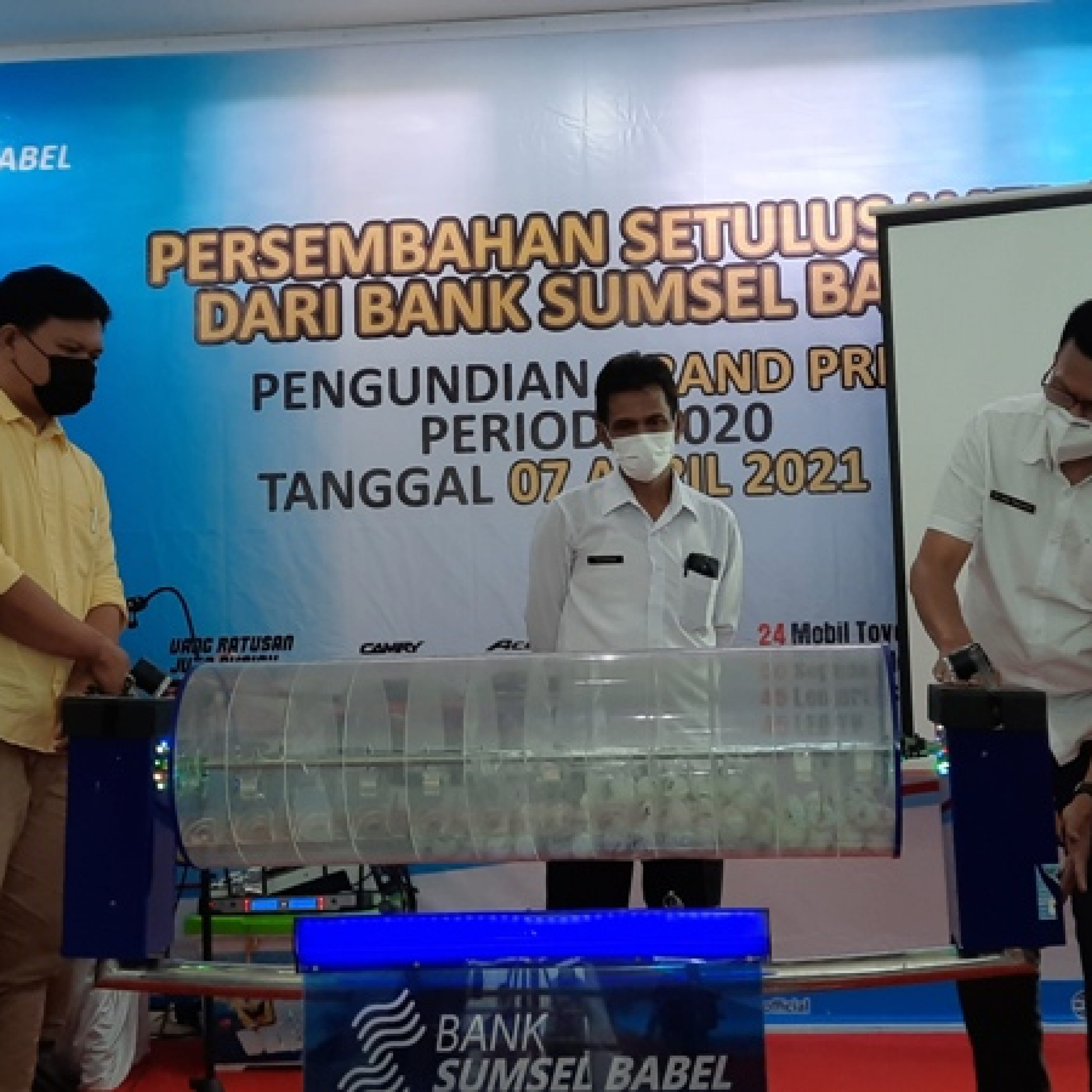 INFOKIO.ID,MUARA ENIM— Bank Sumsel Babel (BSB) Cabang Muara Enim menggelar penarikan undian Grand Prize Tabungan Pesirah periode 2020, di kantor Bank Sumsel Babel (BSB) Cabang Pembantu Tanjung Enim, Rabu (7/4/2021).