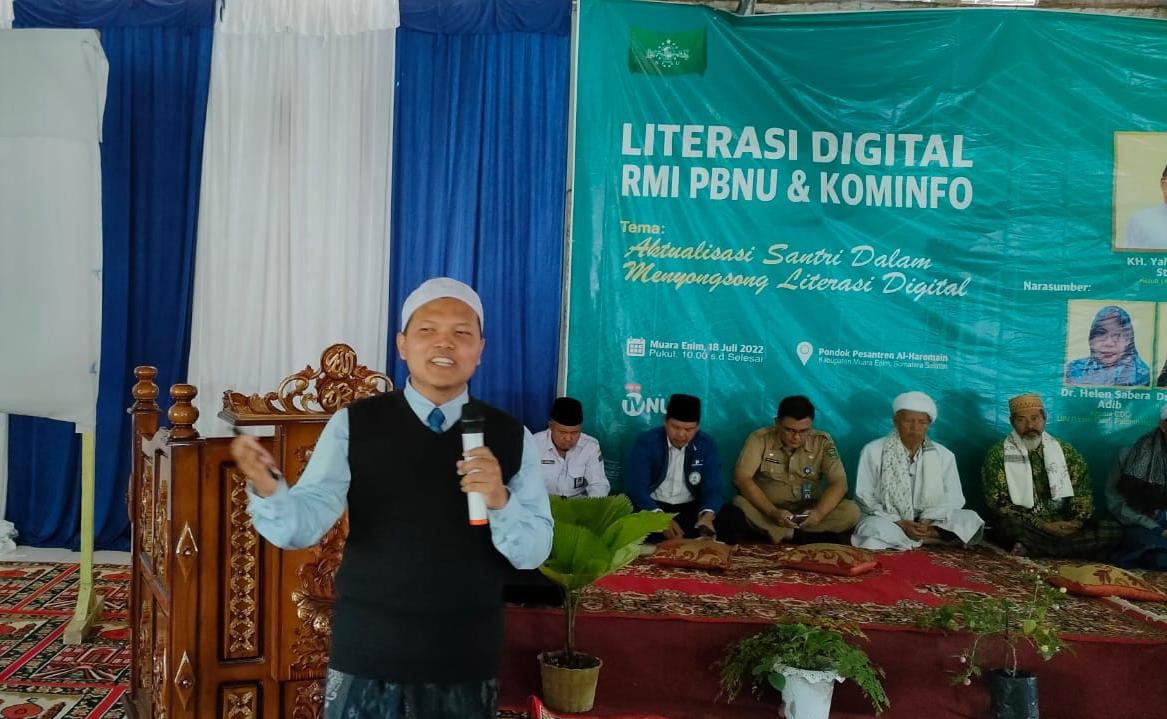 INFOKITO.ID, MUARA ENIM—Sebanyak 1.000 Santri Pondok Pesantren (Ponpes) Al-Haromain mengikuti secara virtual dari Ponpes Al-Haromain Desa Pulau Panggung, Kecamatan Semende Darat Laut (SDL), mengikuti kegiatan Literasi Digital yang diselenggarakan oleh PBNU bekerjasama dengan Kementerian Komunikasi dan Informatika Republik Indonesia (Kemkominfo RI), Senin (18/7/2022).