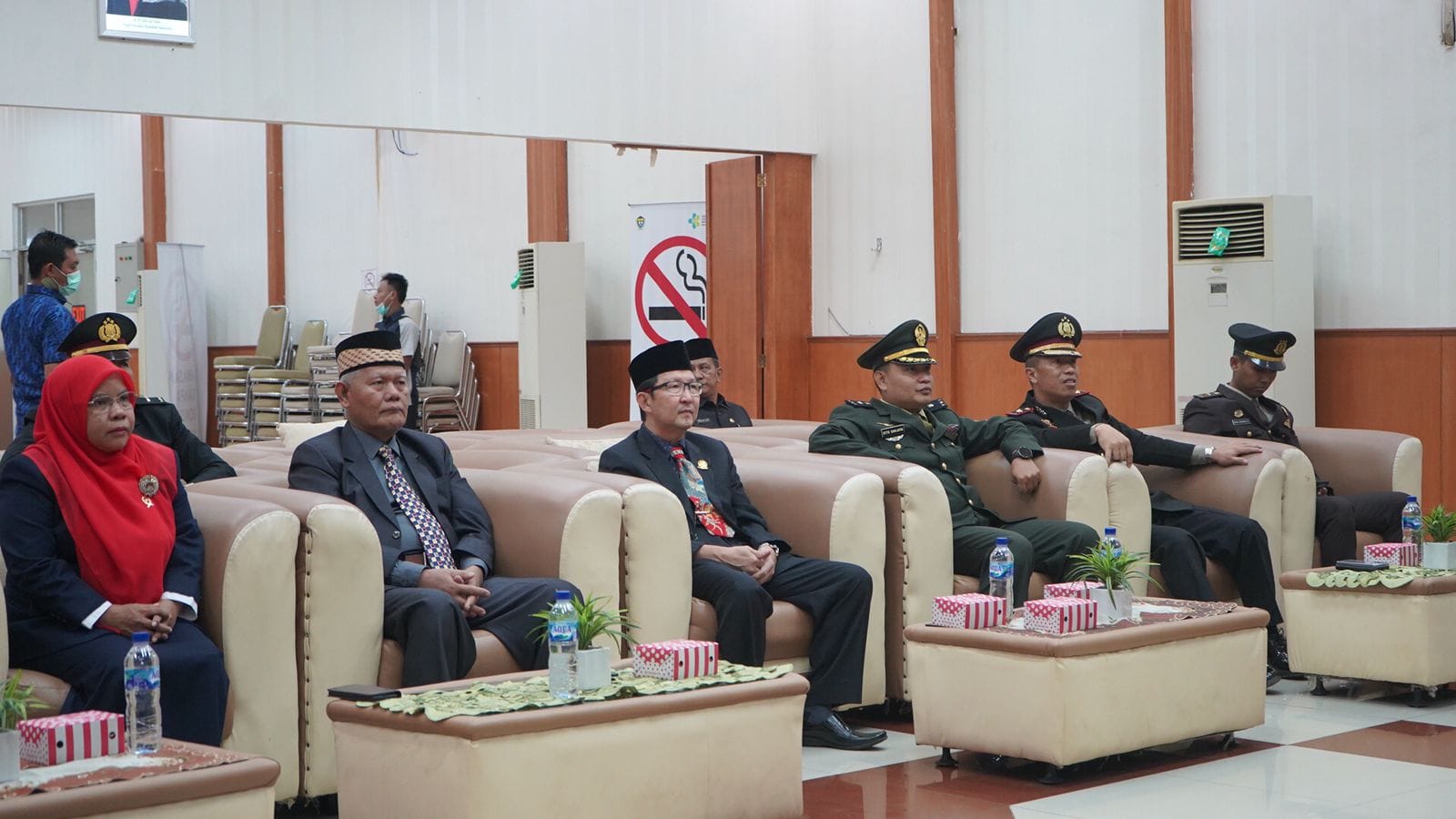 (Pj) Sekretaris Daerah Kabupaten Muara Enim H Riswandar SH MH bersama Ketua Dewan Perwakilan Rakyat Daerah (DPRD) Kabupaten Muara Enim Liono Basuki serta perwakilan Unsur Forkopimda, Minggu pagi (1/10/2022) mengikuti Upacara Peringatan Kesaktian Pancasila Tahun 2022 secara virtual dari Ruang Rapat Pangripta Nusantara Kantor Bappeda Muara Enim.