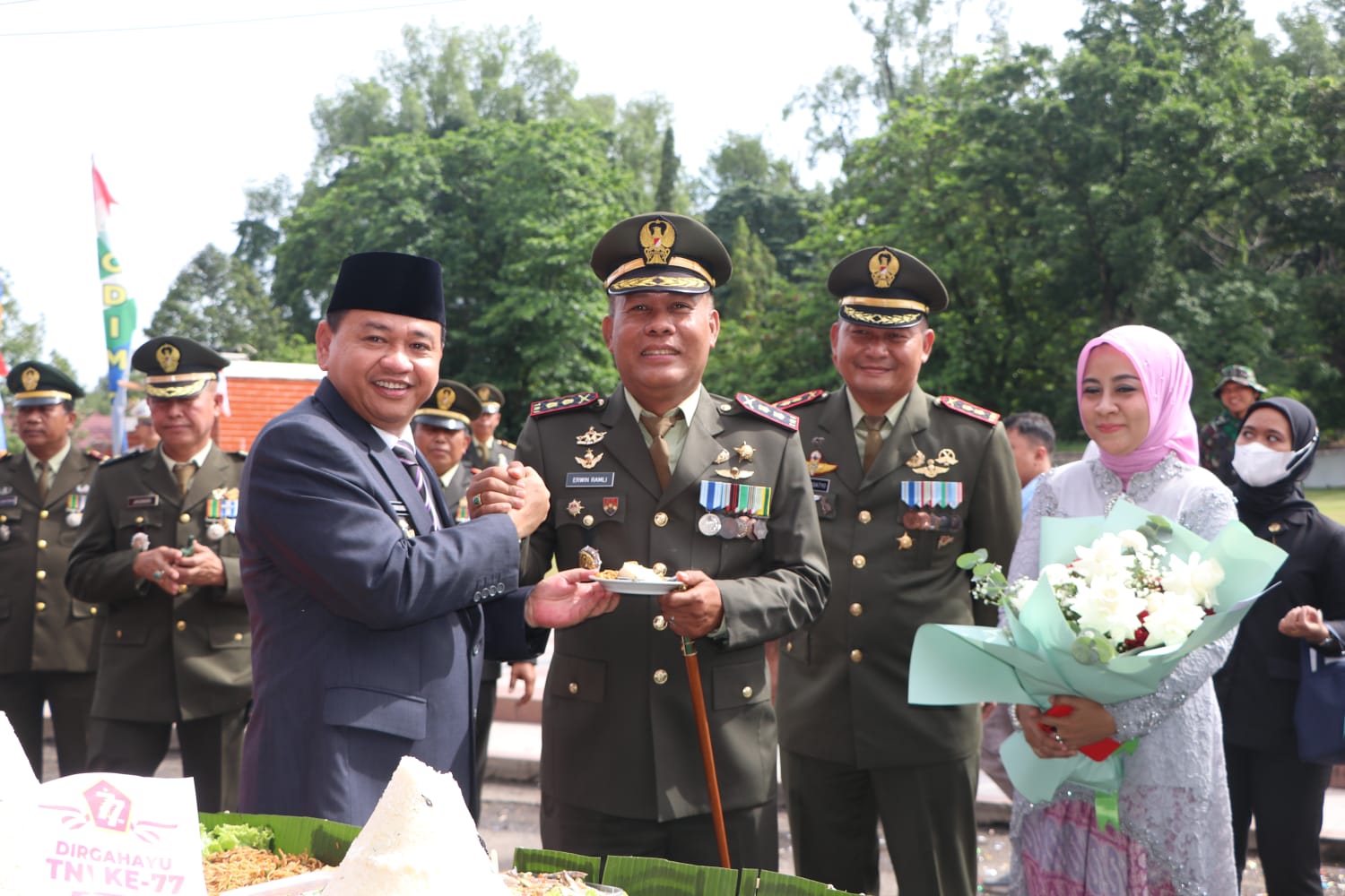 Pada acara tersebut sebagai bentuk syukur dalam peringatan HUT TNI ke-77 juga diadakan pemotongan nasi tumpeng, sebagai tanda ucapan selamat kepada seluruh Personel TNI atas dedikasi dan perjuangannya dalam membela dan menjaga keutuhan NKRI. Serta diserahkan piagam penghargaan Usulan Kenaikan Pangkat (UKP) dari Komandan Komando Distrik Militer (Kodim) 0404 Muara Enim Rimba Anwar kepada 7 Personel Kodim 0404 Muara Enim.(bar/adv)