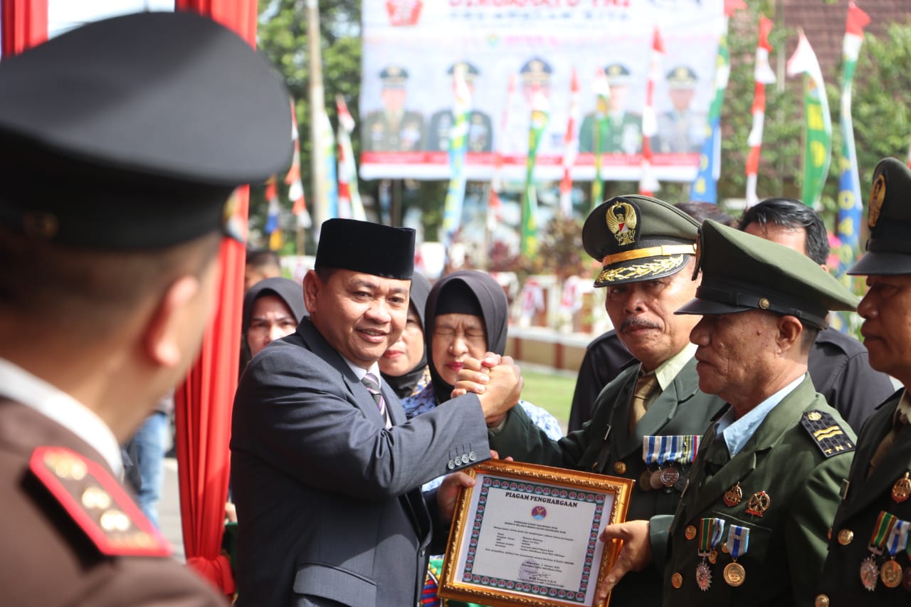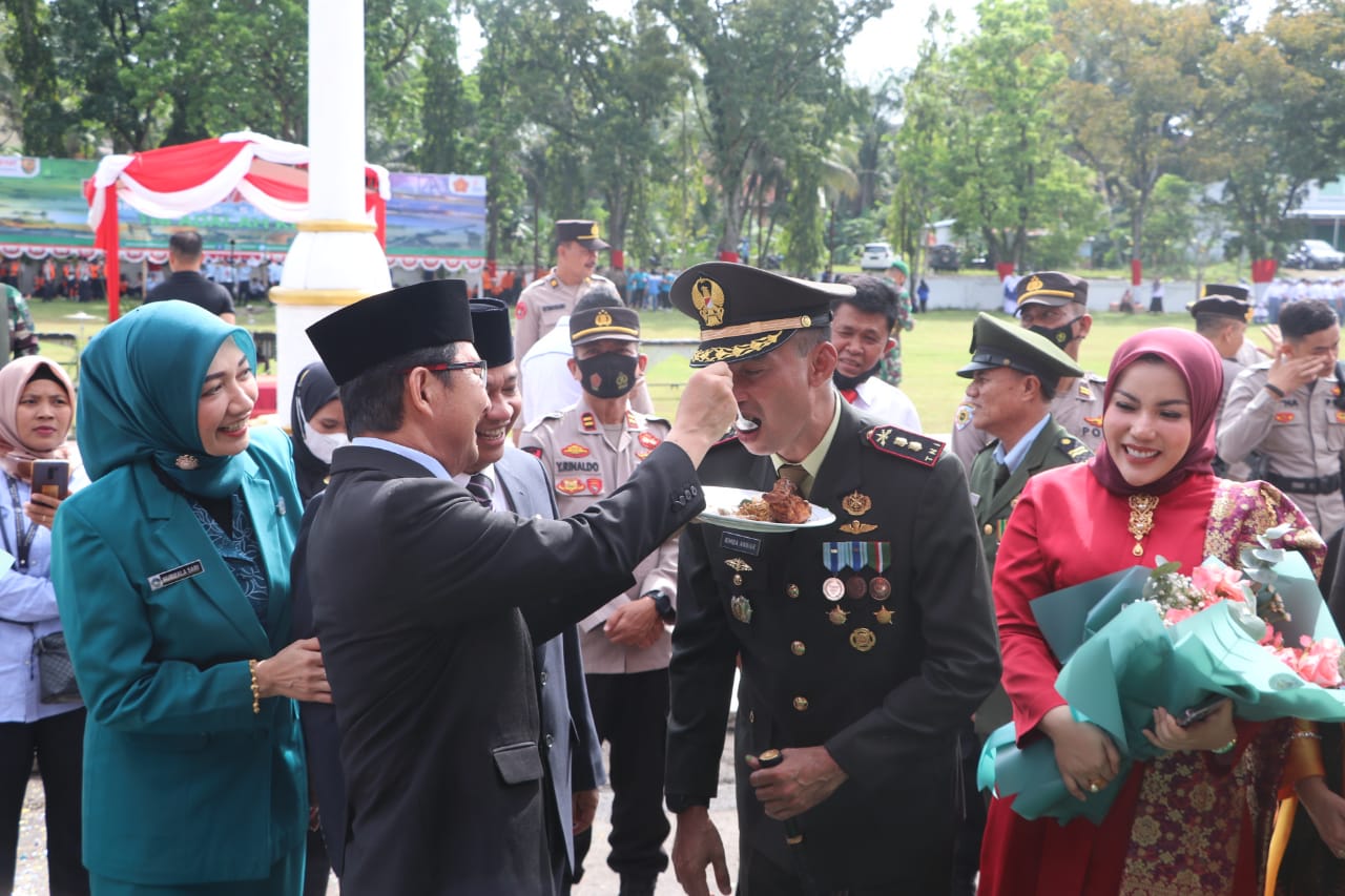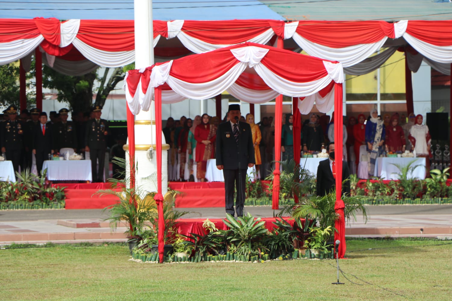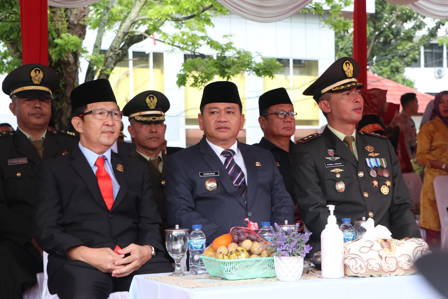 Dengan pemimpin upacara Pj Bupati Muara Enim Kurniawan AP Msi. Hadir juga dalam kesempatan itu Dandim 0404 Muara Enim Letkol Arh Rimba Anwar SIP MIP, Danyonif 141, Danyonkav 5 serbu, Kapolres AKBP Aris Rusdiyanto Sik Msi, Ketua DPRD Liono Basuki Bsc, Kepala PN Elvin Adrian SH MH, Pj Sekda H Riswandar SH MH, pejabat TNI dan Polri, kepala OPD lingkup Pemkab Muara Enim dan tamu undangan lainnya.