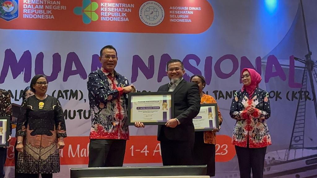 INFOKITO.ID,MUARA ENIM- PT Satria Bahana Sarana (SBS) menjadi satu-satunya perusahaan dari Provinsi Sumatera Selatan yang menerima apresiasi dan penghargaan dari Kementerian Kesehatan (Kemenkes) melalui Asosiasi Dinas Kesehatan (Adinkes), Selasa (1/8/2023) dalam suatu kegiatan di Kota Makasar, Sulawesi Selatan (Sulse).