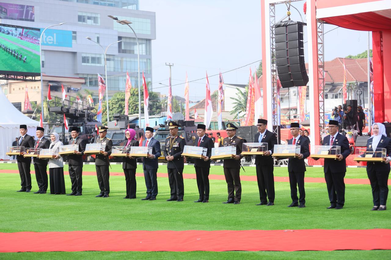 Adapun penghargaan berupa piagam, pin emas dan plakat pedang dari Kapolri diberikan kepada Pj Bupati Ahmad Rizali. Penghargaan serupa juga diberikan kepada Pj Gebernur Sumsel, Elen Setiadi,SH MSE, Pj. Gubernur Sumatera Utara, Dr Drs H Agus Fatoni MSi beserta sejumlah Kepala daerah lainnya di Sumsel.