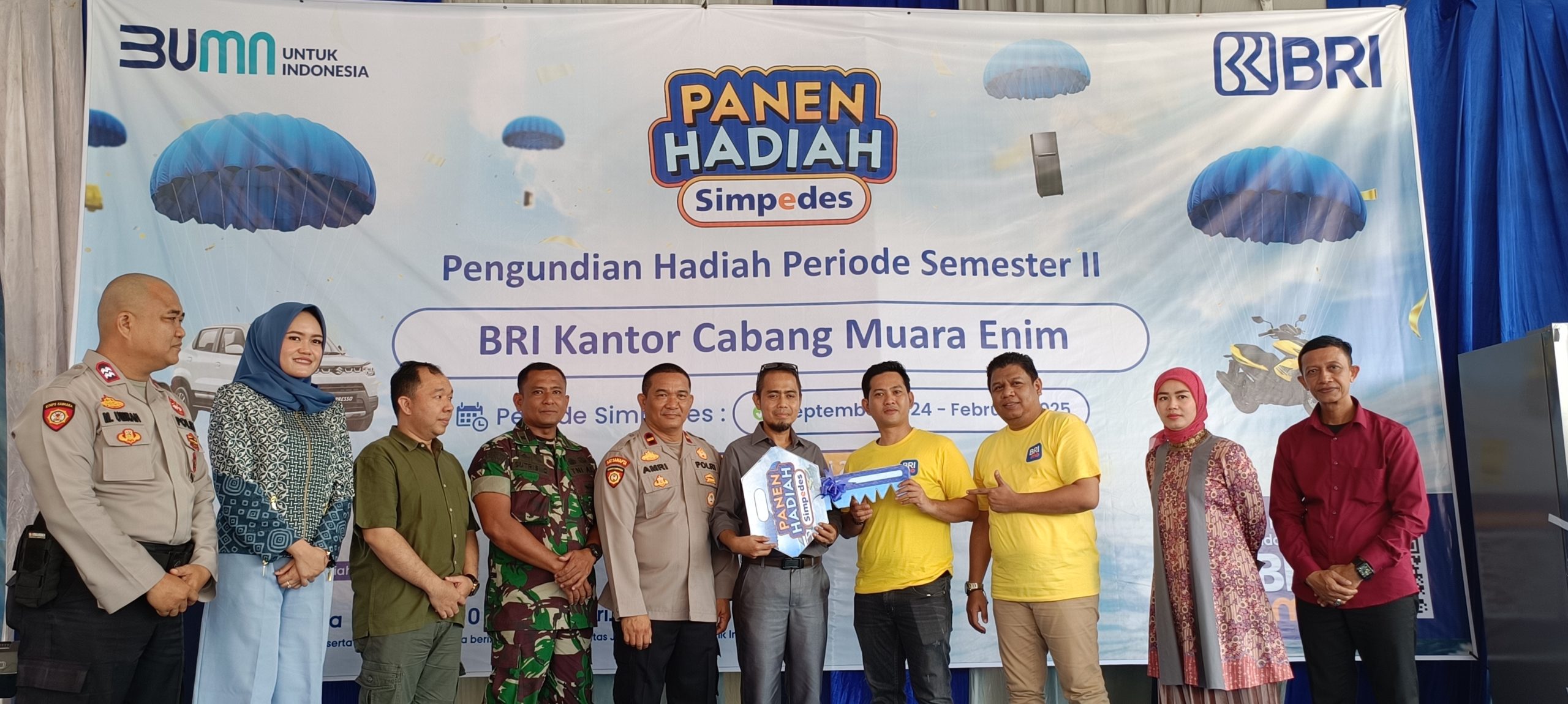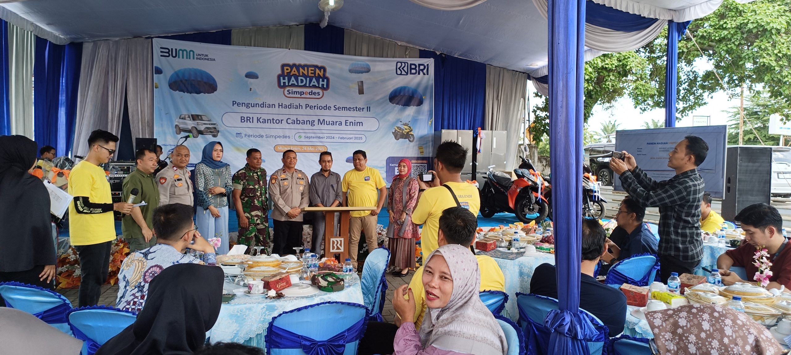 Acara pengundian berlangsung meriah pada Sabtu, 24 Mei 2025, di halaman Kantor Cabang BRI Muara Enim, disaksikan langsung oleh perwakilan pemerintah daerah, unsur Forkopimda, perwakilan nasabah, serta sejumlah pihak berwenang dari kepolisian, notaris, dan Dinas Sosial Provinsi Sumsel.